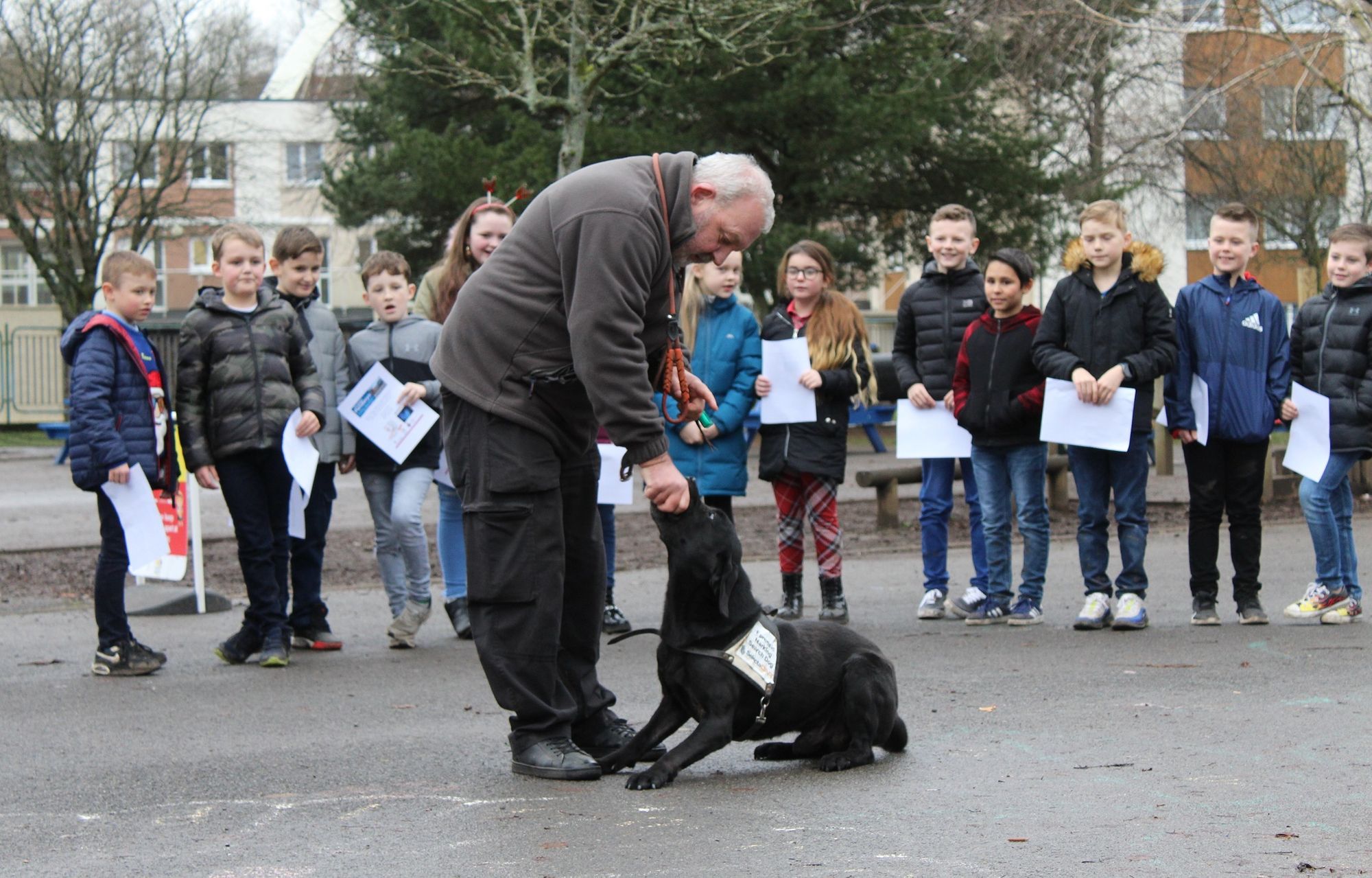 South Wales Police received over 200 entries from pupils at two local primary schools. Three winning designs were chosen and will be made into street signs which will be attached to lamp posts throughout the ward. All pupils were given certificates for taking part, and were treated to a demonstration from Ronnie, a specially trained DNA dog who uses