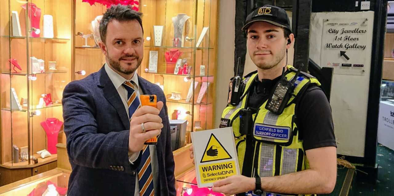 Safer City Services, the crime reduction arm of Lichfield BID, which is the elected authority by the business community of Lichfield, has just launched a new ShopSafe scheme across its city-centre jewellery stores, with staff receiving special training to carry the compact, handheld DNA sprays to protect themselves and retail stock.