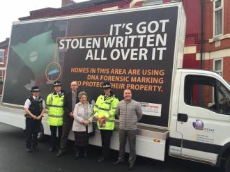 Together, they visited homes in Birkenhead to offer reassurance messages and crime prevention advice. An advertising van drove around the neighbourhood with them displaying a poster with the strapline: ‘It’s got stolen written all over it’ to promote the use of SelectaDNA in the area.